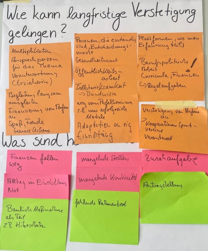 Ein zentrales Fazit: Nachhaltigkeit gelingt nur, wenn Projekte von Beginn an auf Verstetigung ausgerichtet sind und verschiedene Ebenen – von der Praxis bis zur Strukturentwicklung – zusammengedacht werden.